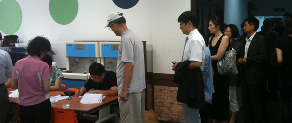 오전 7시 서울 강남구 신사동 신사중학교에 마련된 투표소에 들어서자 시민들이 투표를 위해 길게 줄 서 있는 모습이 눈에 들어왔다. 10m는 족히 넘는 줄이었다. 투표를 하고 나오는 시민들은 “이 정도면 주민투표가 성사될 것 같다”고 말하며 기대감을 표했다.